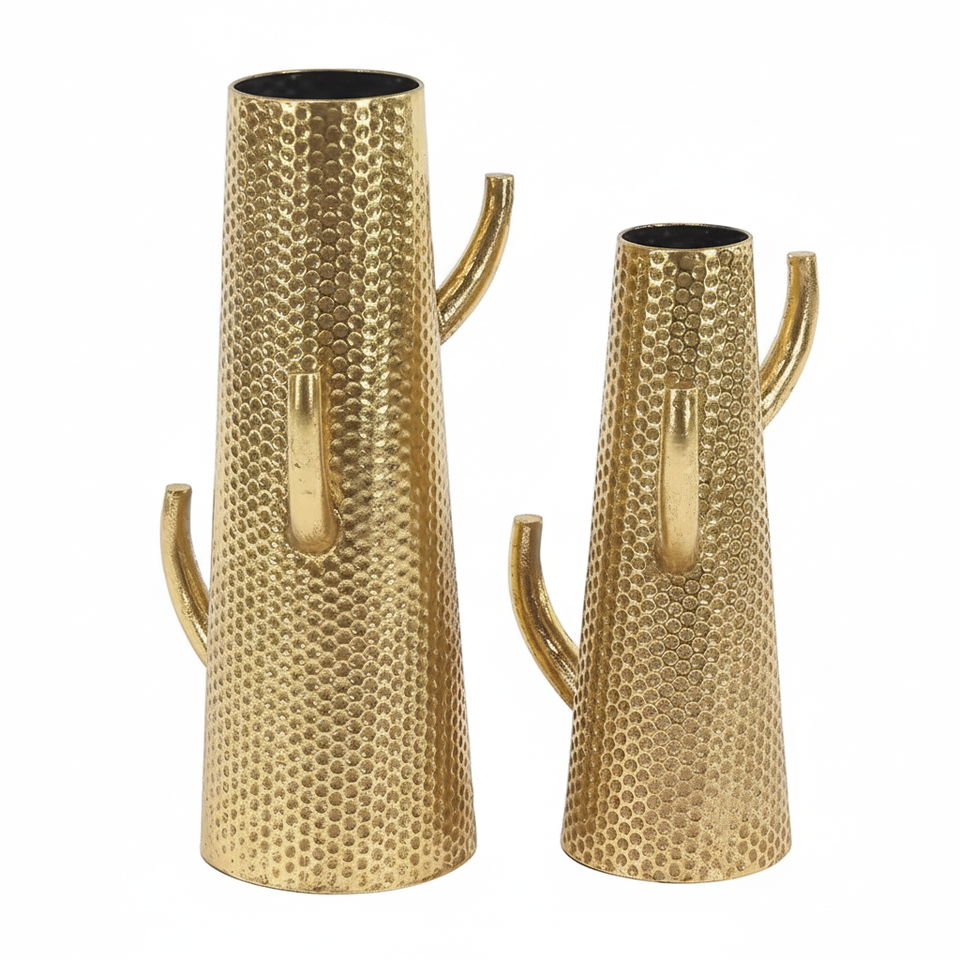 แจกันดอกไม้โลหะทันสมัยสำหรับตกแต่งบ้าน งานแต่งงาน แจกันตั้งโต๊ะ ชุด 2 ใบ แจกันเหล็กทรงกระบองเพชร ตกแต่งสีทอง