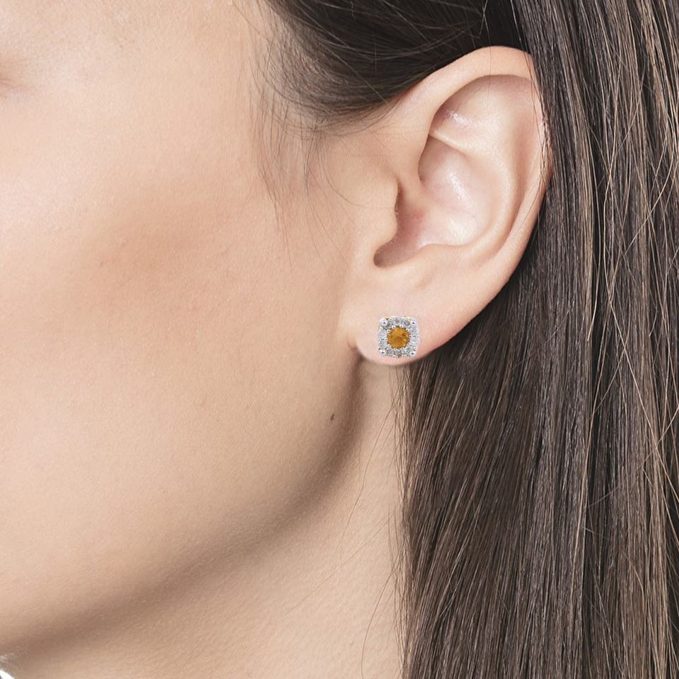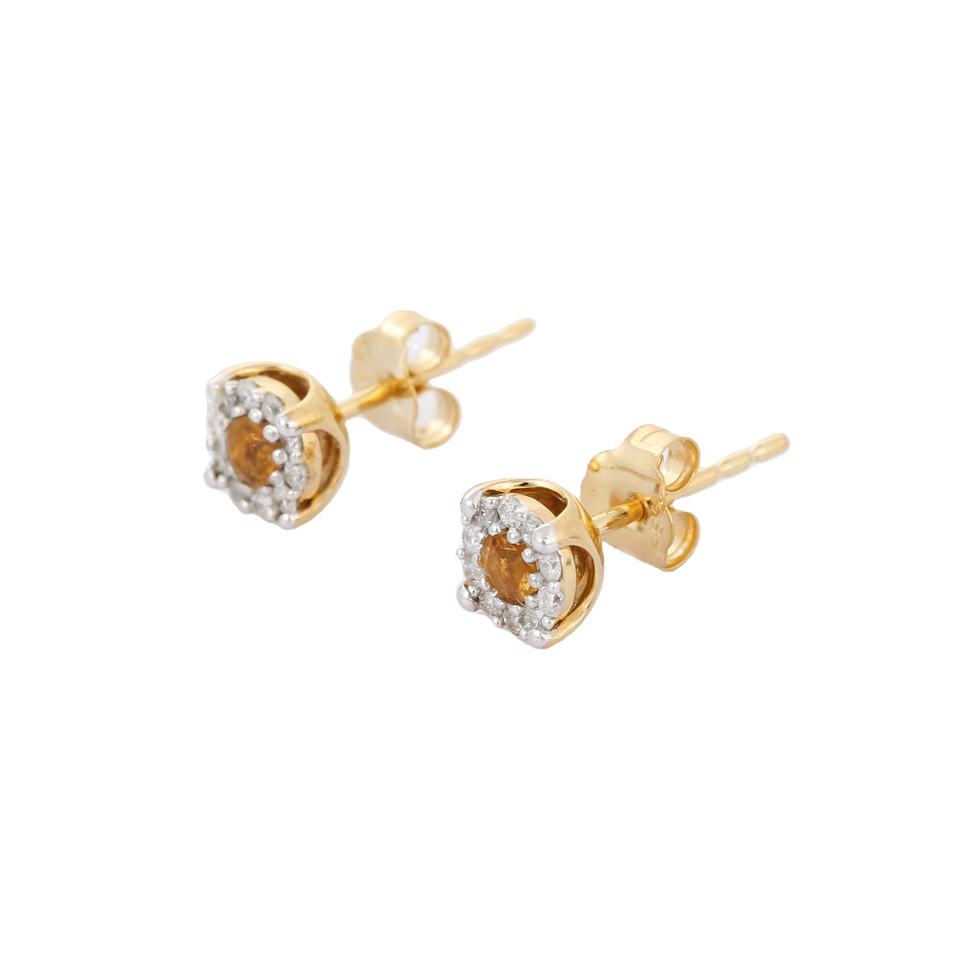 ต่างหูเม็ดกลมสีทอง14K แบบเรียบง่ายประดับอัญมณีซิทรีนจากธรรมชาติเพชรเม็ดเล็กสำหรับงานแต่งงานของขวัญวันครบรอบ
