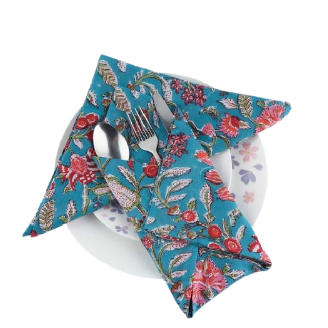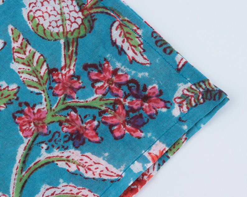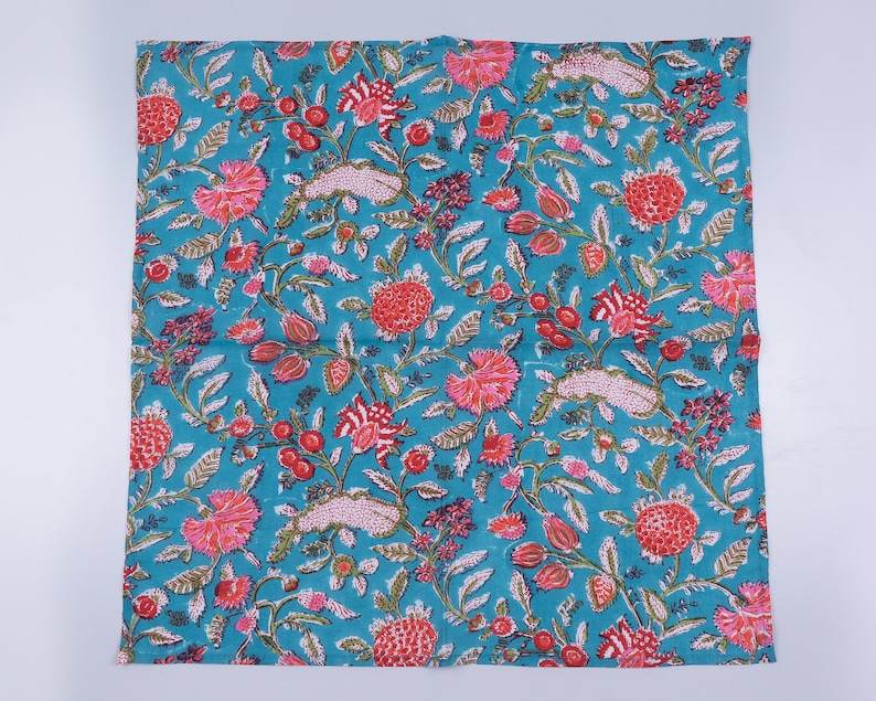 ผ้าเช็ดปากผ้าฝ้ายพิมพ์ลายดอกไม้แบบอินเดีย2025สีน้ำเงินอมเขียวสีชมพูแดงสำหรับงานแต่งงานในบ้าน