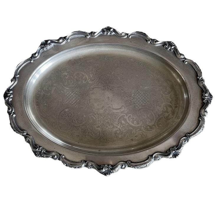 ถาดเสิร์ฟอะลูมิเนียมชุบเงินทรงสี่เหลี่ยมผืนผ้า ดีไซน์หรูหราสำหรับโต๊ะอาหารที่บ้าน รุ่นยอดนิยมปี 2026 เหมาะสำหรับใส่ผลไม้อบแห้งและอินทผลัมในช่วงรอมฎอน