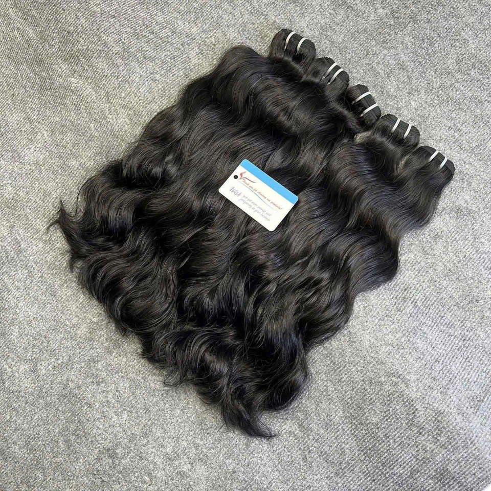 ต่อผมแท้สีดำเข้มแบบลอนคลื่น สไตล์เวียดนาม ปี 2026 กำลังเป็นที่นิยม ผลิตด้วยเครื่องจักร แบบ Double Weft พร้อมส่ง