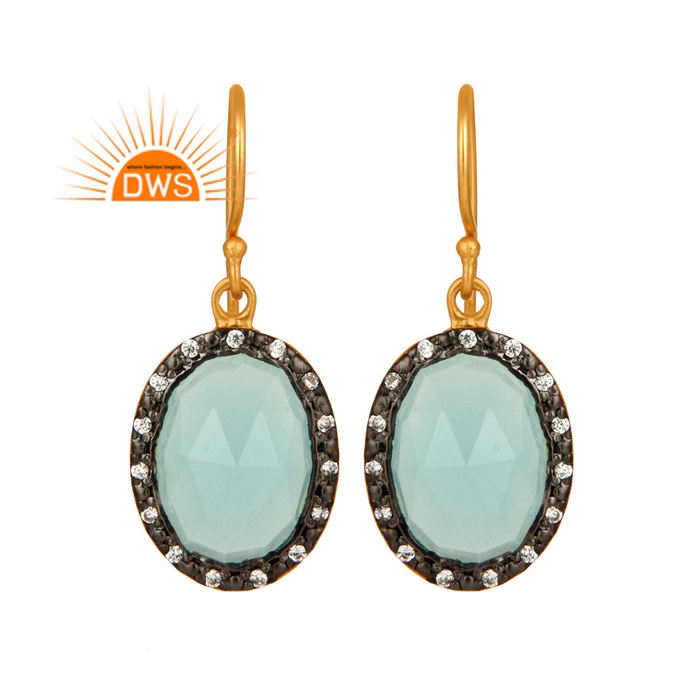 ต่างหูห้อยประดับพลอยแคลเซโดนีสีฟ้าธรรมชาติและเพชร CZ เงินแท้ ดีไซน์ทันสมัยปี 2026 สำหรับผู้หญิง จากผู้ผลิตเครื่องประดับ