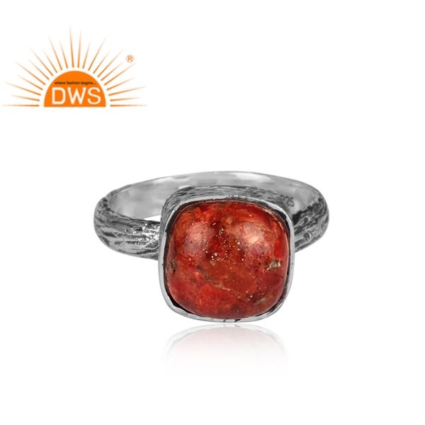 แหวนพลอยปะการังสเตอร์ลิงทำจากเงินธรรมชาติสำหรับผู้หญิงเป็นของขวัญสำหรับผู้หญิงได้รับความนิยม925ออกซิไดซ์