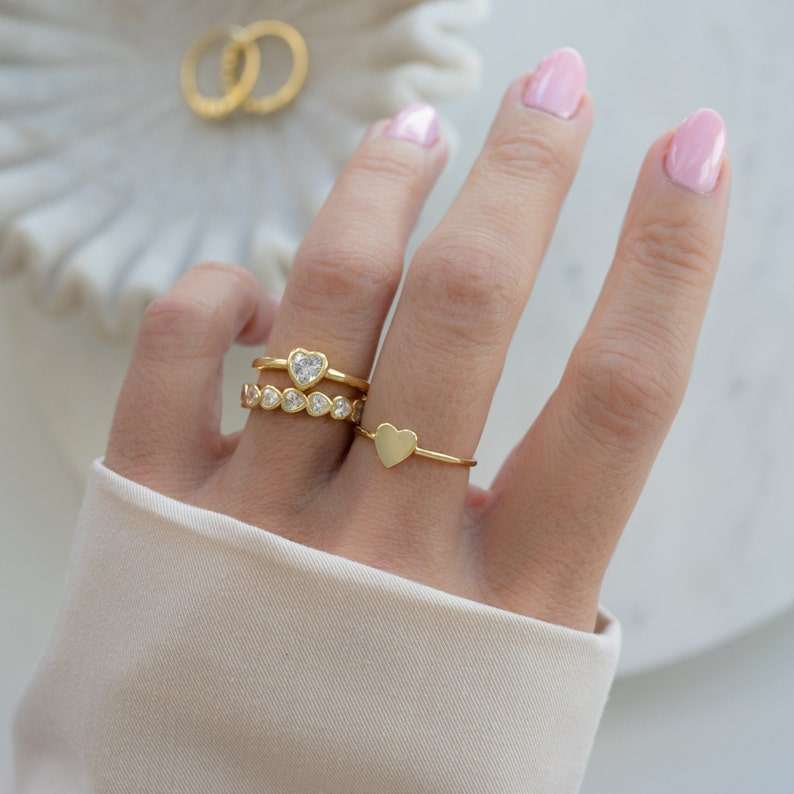 แหวนเงินแท้ที่ได้รับความนิยมใน925ที่เป็นของแข็งรูปทรงหัวใจเรียบง่ายสวยงามมีเพทายลูกบาศก์เครื่องประดับที่เรียบง่ายสง่างาม