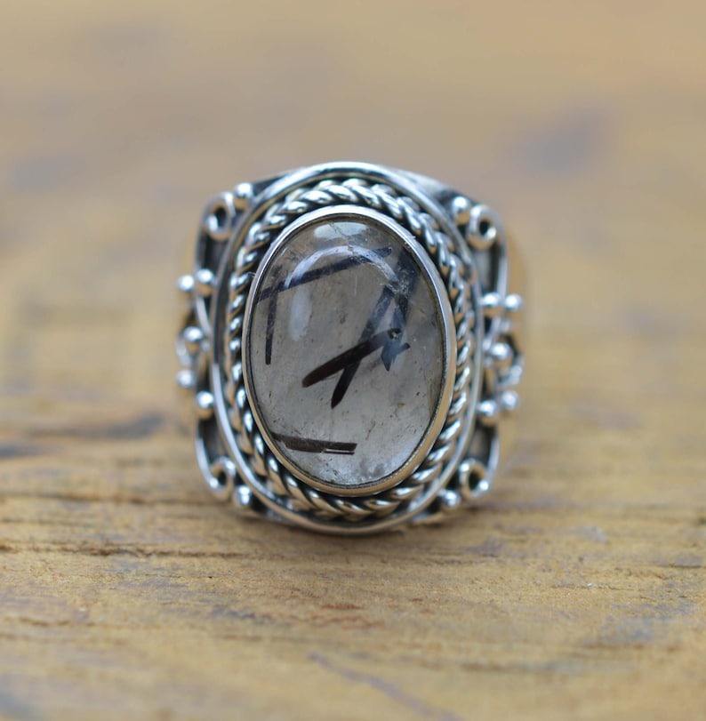 แหวนพลอยอัญมณีสีดำเงินสเตอริง925ที่กำลังมาแรงเครื่องประดับทำด้วยมือเงินสไตล์ Boho สำหรับเป็นของขวัญสำหรับผู้หญิง