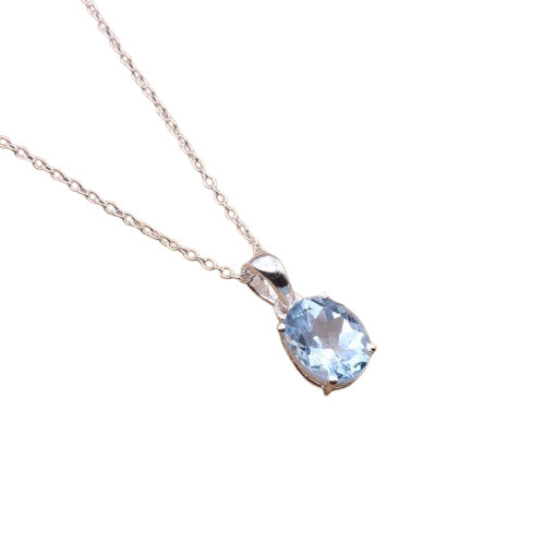 เครื่องประดับจี้พลอยบุษราคัมสีฟ้าเงินสเตอร์ลิง925ทำด้วยมือจี้เงินสไตล์ Boho สำหรับเป็นของขวัญให้ผู้หญิง