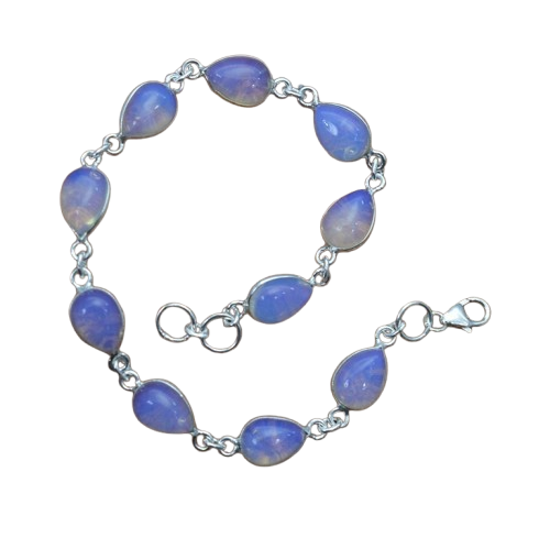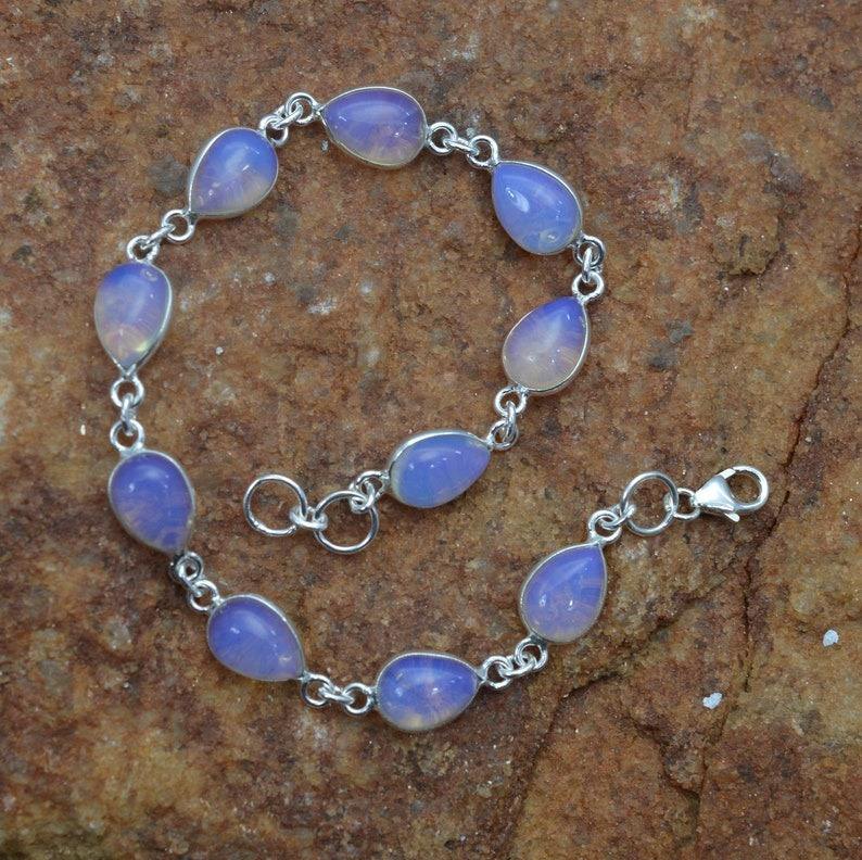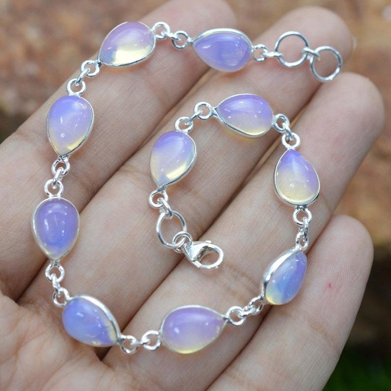 สร้อยข้อมืออัญมณีโอปอลสีเงินสเตอร์ลิงแบบ925กำไลข้อมือทำด้วยมือเงินสไตล์ Boho สำหรับเป็นของขวัญสำหรับผู้หญิง