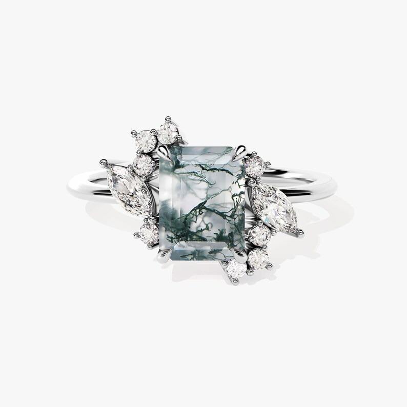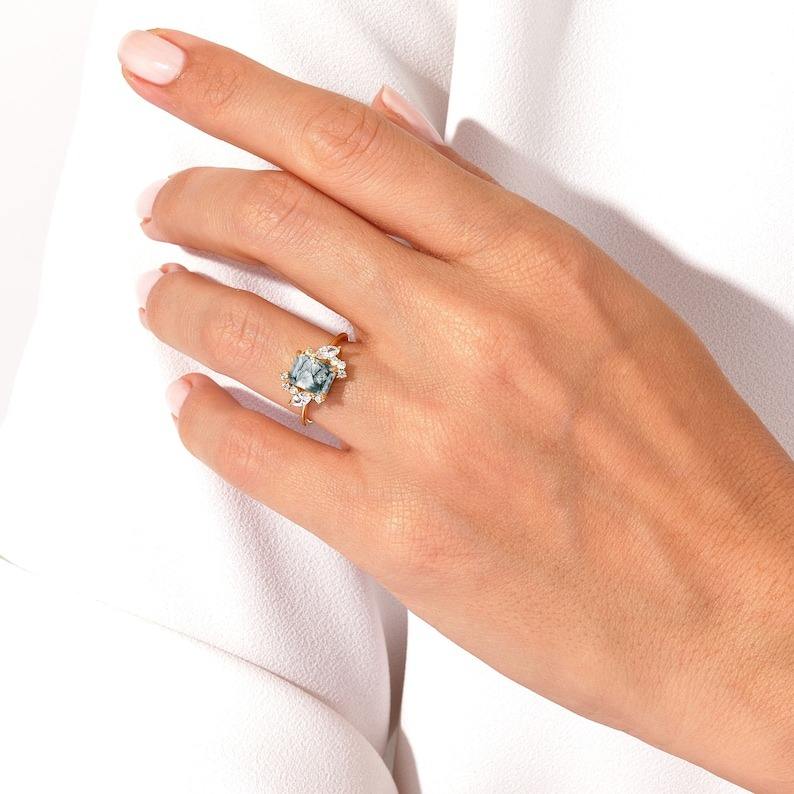 แหวนอัญมณีโมรามอสเงินสเตอร์ลิง925ทันสมัยเครื่องประดับทำมือแหวนเงินสไตล์ Boho สำหรับเป็นของขวัญสำหรับผู้หญิง