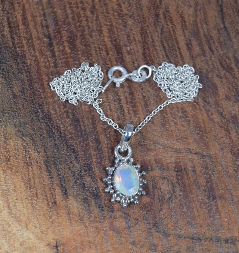 จี้โอปอลอัญมณีทำมือสไตล์โบโฮสีเงินสเตอร์ลิง925พร้อมของขวัญสำหรับผู้หญิงชุบโรเดียม