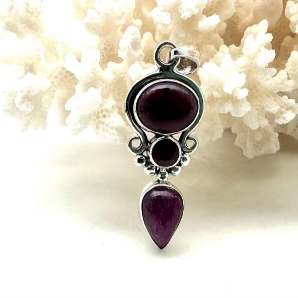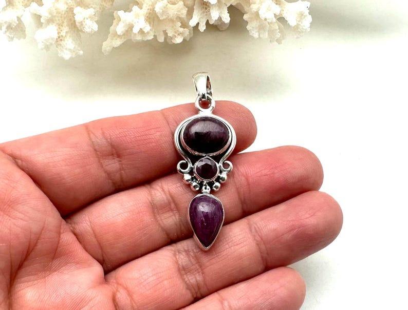 จี้เงินแท้ 925 ชุบโรเดียม ประดับทับทิมทรงโซลิแทร์ งานแฮนด์เมด สไตล์โบโฮ ของขวัญสำหรับผู้หญิง กำลังเป็นที่นิยม