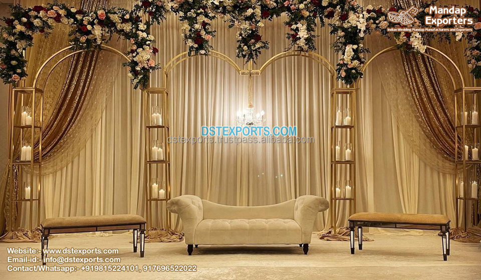 ซุ้มโลหะสำหรับตกแต่งงานแต่งงานที่สวยงามอุปกรณ์เสริมซุ้มโลหะสีทองสำหรับตกแต่งงานแต่งงาน
