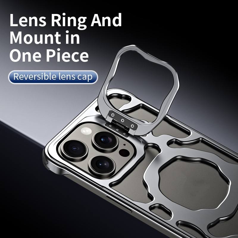 เคสโทรศัพท์แบบโปร่งแสงระบายความร้อน ดีไซน์โลหะอะลูมิเนียม พร้อมที่ยึดกล้อง สำหรับ iPhone 15 14 13 Pro Max