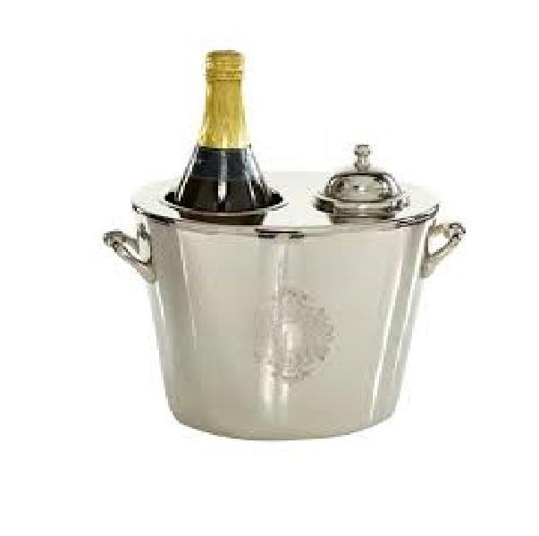 ถังน้ำแข็งสีเงินแบบโบราณพร้อมด้ามจับตู้แช่ไวน์ขวดแชมเปญพร้อมโลโก้บาร์ไวน์ที่กำหนดเอง