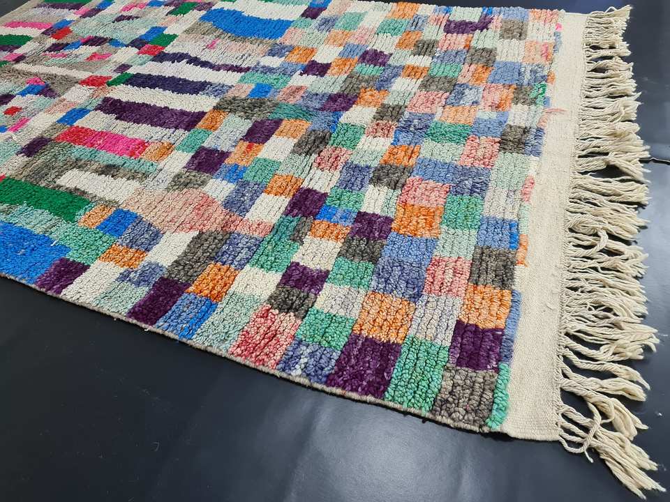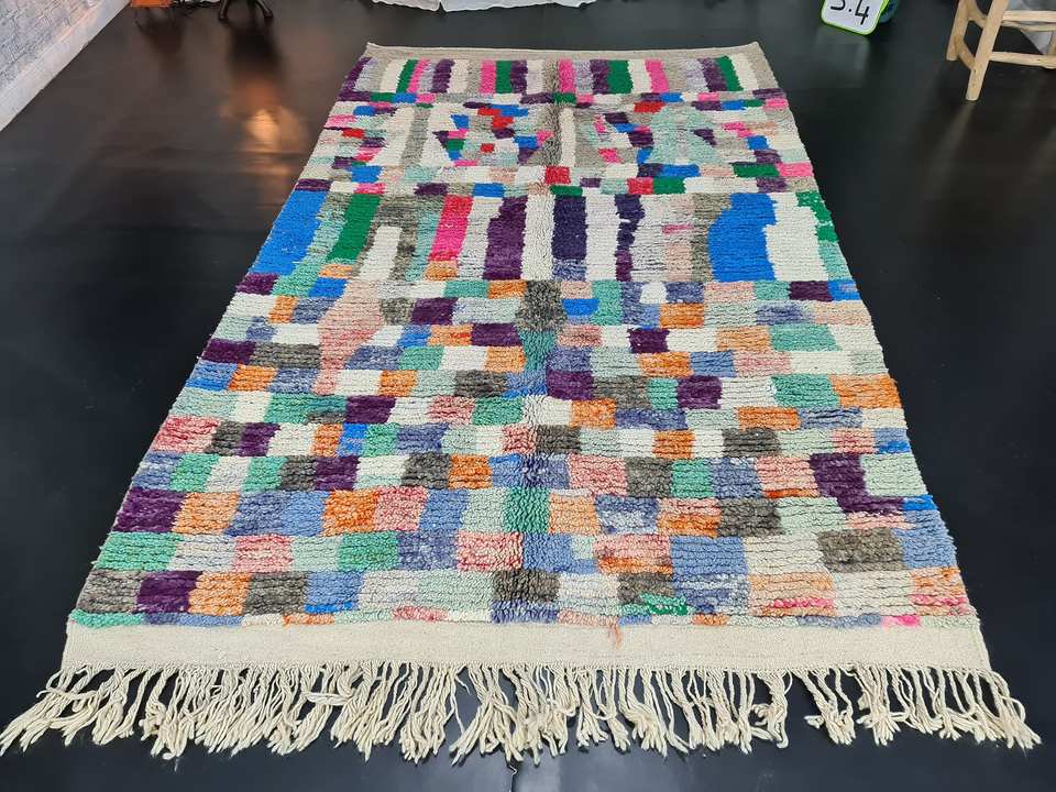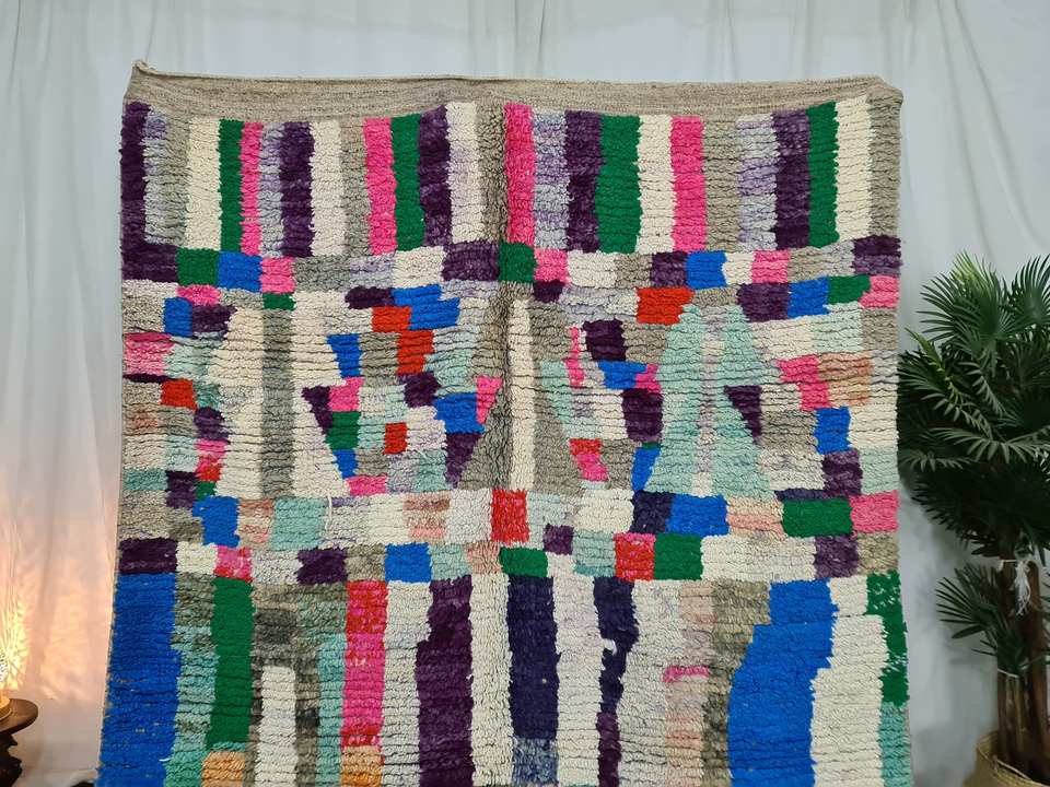 พรมขนสัตว์โบราณทำมือ ลายบูจาดหลากสี ชนเผ่าเบอร์เบอร์ ขนาด 9x12 ฟุต พรมสไตล์โบฮีเมียนสำหรับห้องนั่งเล่น