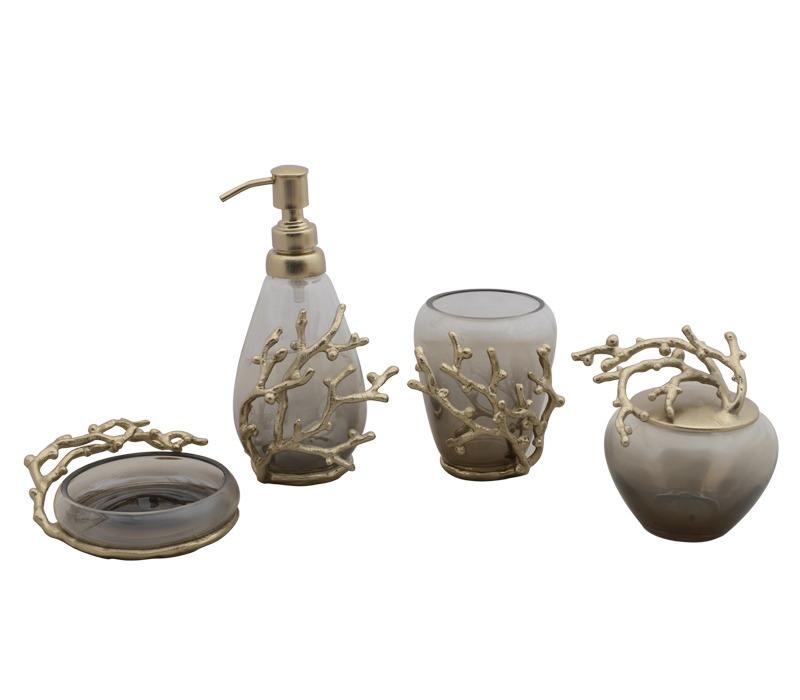 อุปกรณ์ห้องน้ำยอดนิยมชุดอาบน้ำอลูมิเนียมแก้วสีทองเสร็จสิ้นการออกแบบที่ทันสมัยอาบน้ำ4ชิ้นโลหะตู้สบู่เหลว