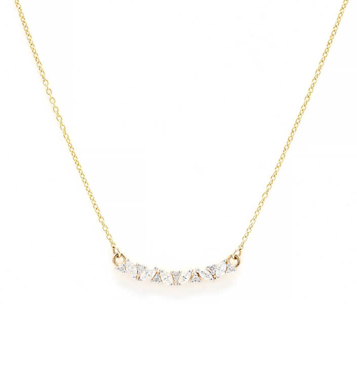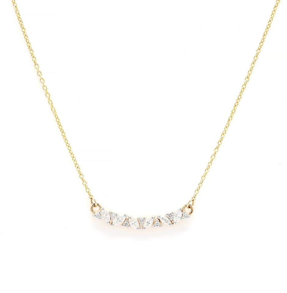 สินค้าขายดี100% สร้อยคอเพชรธรรมชาติโค้งทรงกลมเพชร14K เครื่องประดับเพชรสีเหลืองทอง