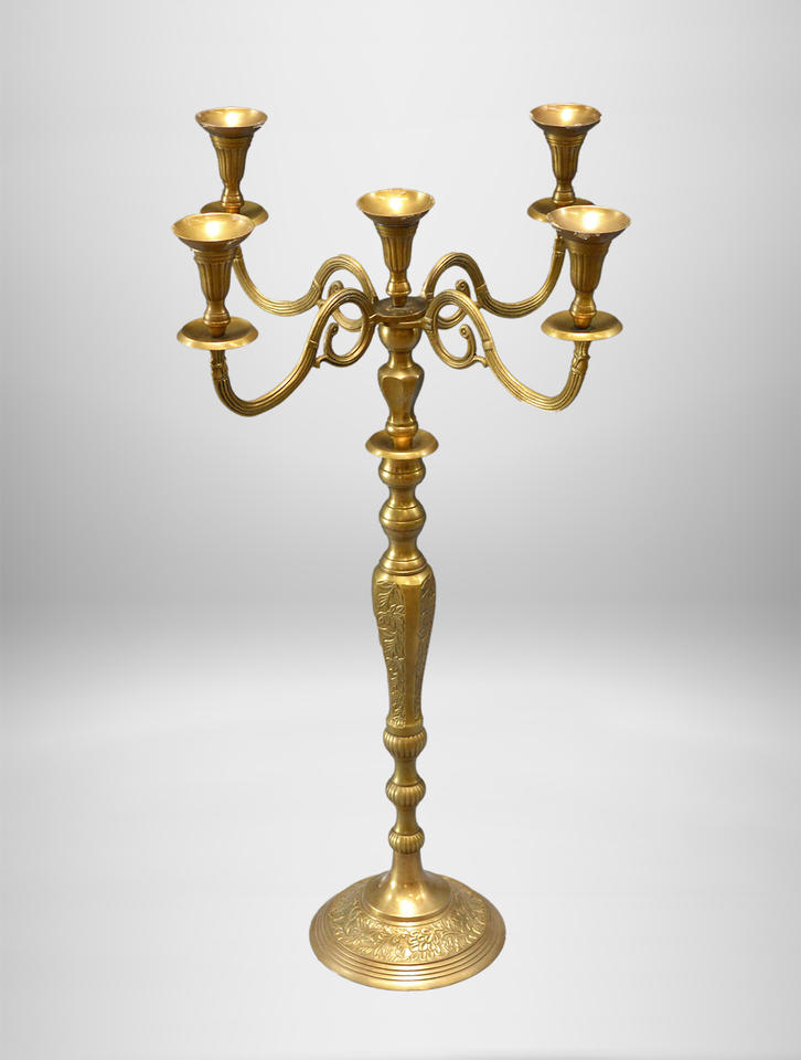 เชิงเทียนทองเหลืองพร้อมเชิงเทียนสำหรับตกแต่งคริสต์มาสกลางโต๊ะสำหรับงานแต่งงานและร้านอาหาร