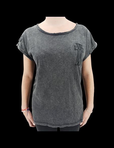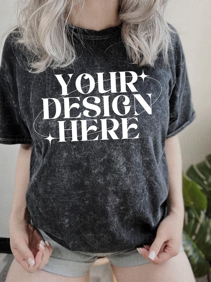 เสื้อยืดล้างกรดระบายอากาศ / ล้างหินยอดนิยมสําหรับผู้หญิงเสื้อยืดโลโก้ที่กําหนดเองสําหรับผู้หญิงปรับแต่งได้