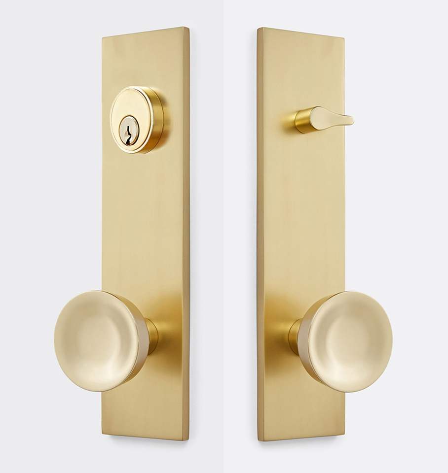 มือจับประตูคู่แบบดึง ทำจากทองเหลืองขัดเงาและสแตนเลส สำหรับเฟอร์นิเจอร์บ้าน สามารถปรับแต่งได้ พร้อมระบบล็อคแบบ Passage และแบบ Privacy