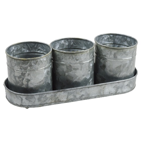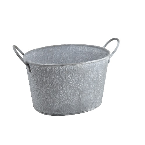 กระถางต้นไม้ทำจากโลหะชุบสังกะสีพร้อมถาดและที่จับแบบไม่มีหูจับผลิตจากพื้นผิวในอินเดีย