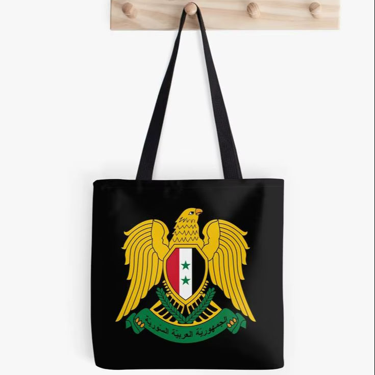 กระเป๋าผ้าโพลีเอสเตอร์พิมพ์ลายตราแผ่นดินยอดนิยม กระเป๋าช้อปปิ้งแบบใช้ซ้ำได้ กระเป๋าสะพายผ้าสีดำสำหรับใส่ของชำ กระเป๋าเดินทาง