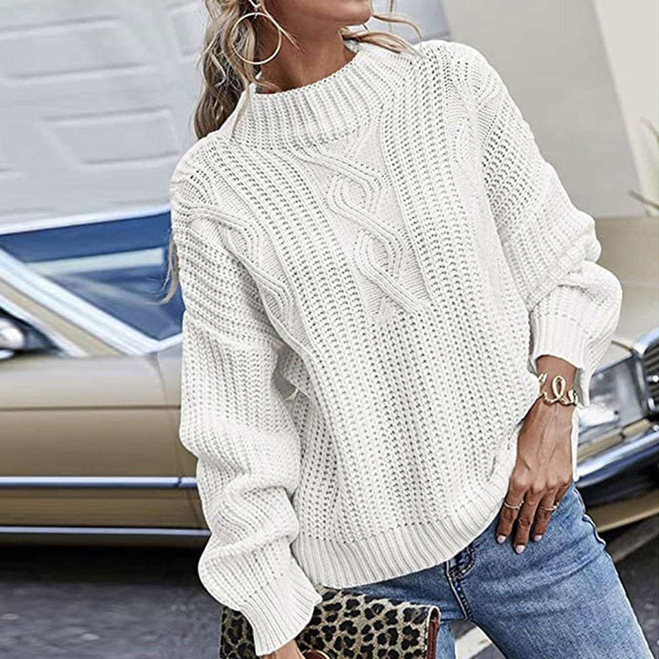 สเวตเตอร์ถักแบบสวมศีรษะของผู้หญิงสเวตเตอร์ถักแขนยาวผ้าฝ้ายเนื้อนุ่มออกแบบได้ตามต้องการ