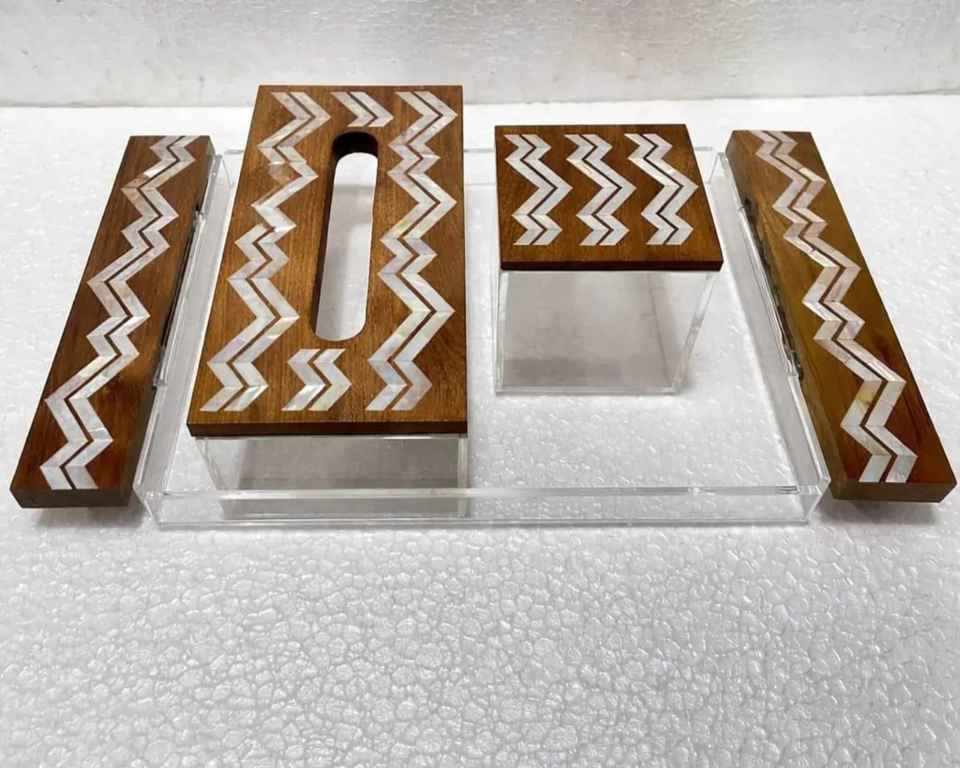 ถาดเสิร์ฟอะคริลิกตกแต่งทันสมัยพร้อมหูจับไม้ รูปทรงสี่เหลี่ยมผืนผ้า เป็นมิตรกับสิ่งแวดล้อม ปลอดภัยสำหรับเครื่องล้างจาน เหมาะสำหรับงานแต่งงาน ตกแต่งบ้าน