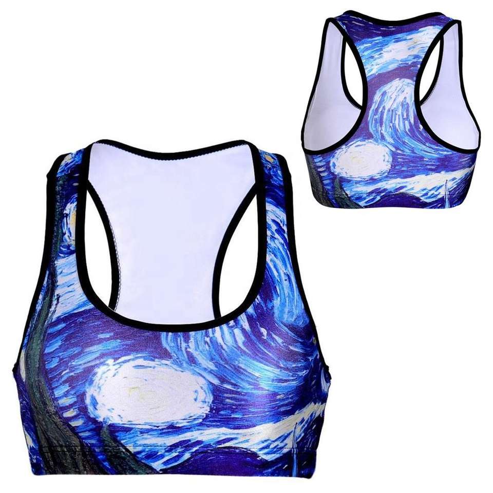 บราออกกำลังกายแบบซับลิเมชั่นดีไซน์ทันสมัย บราฟิตเนสใส่สบาย ผลิตจากวัสดุคุณภาพดี สำหรับบราโยคะไซส์ใหญ่ บราแบบซัพพอร์ตสูง