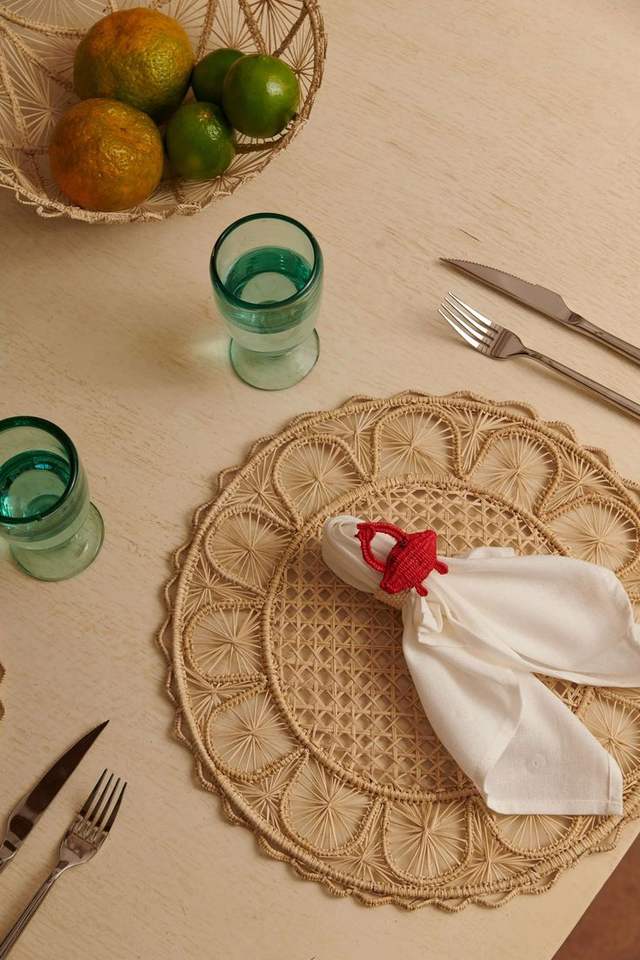 เสื่อปูโต๊ะรับประทานอาหารดีไซน์แบบได้รับความนิยมแผ่นรองแก้วปอกระเจาถักด้วยมือทนความร้อนเสื่อรองจานทำจากผ้าลินินปอกระเจาสำหรับใส่กาแฟ