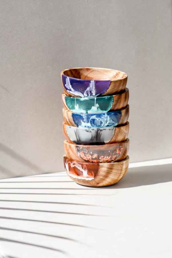 ชามเรซิ่นดีไซน์ทันสมัย ชามใส่อาหารเรซิ่น ชามซุปไม้เรซิ่น ชามไม้โบราณทำมือ ชามเสิร์ฟอาหาร อุปกรณ์บนโต๊ะอาหาร