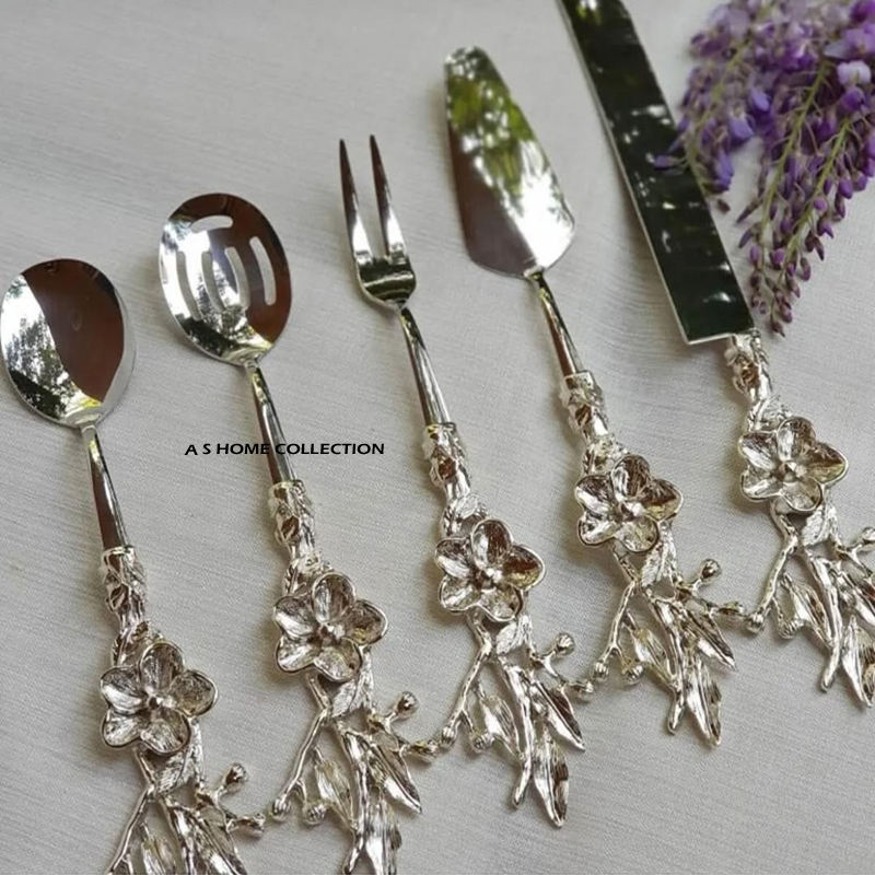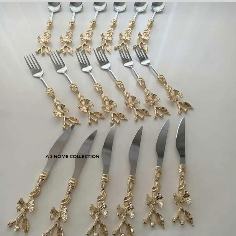 Trending Design Golden Leafy Handle Stainless Steel Metal Cutlery Sets Flatware For Dinner Tableware