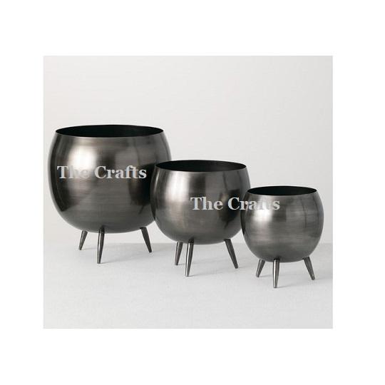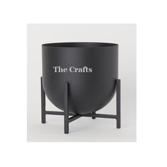 กระถางต้นไม้ดีไซน์ทันสมัย สีดำเหล็ก พร้อมขาตั้งเหล็ก รูปทรงกลม ตกแต่งสวน ราคาสุดคุ้ม