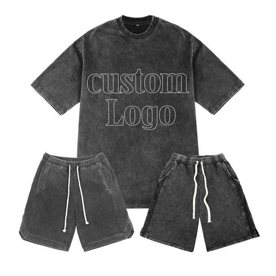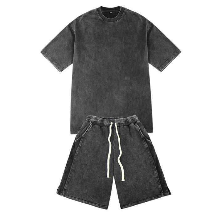 Trending Design Shorts and T-shirt Sets 100% Cotton Acid Wash Custom Logo Drop Shoulder Twin Set For Men's