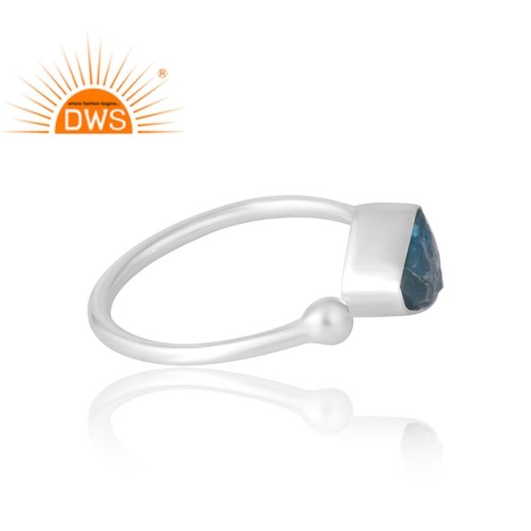 แหวนพลอยอะพาไทต์ทำจากนีออนธรรมชาติเงินสเตอร์ลิงเครื่องประดับตามสั่งของขวัญสำหรับผู้หญิงสำหรับเธอ