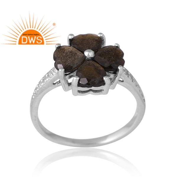 การออกแบบที่ได้รับความนิยมเงินสเตอร์ลิงออบซิเดียนเงาธรรมชาติและแหวนพลอยทอปาสสีขาวผู้ผลิตเครื่องประดับที่กําหนดเอง