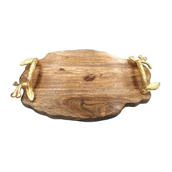 Trending Design Wooden Serving Tray With Iron Metal Handle Snacks Serving Home Hotel & Restaurant Serving Tray With Logo
