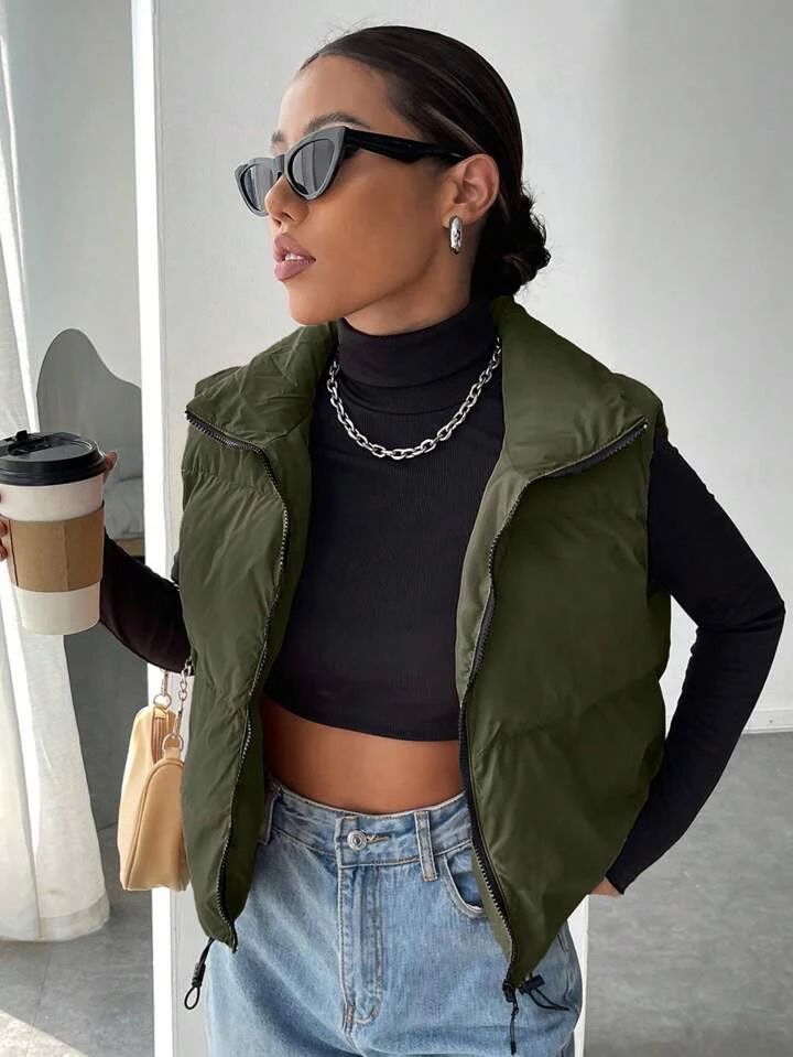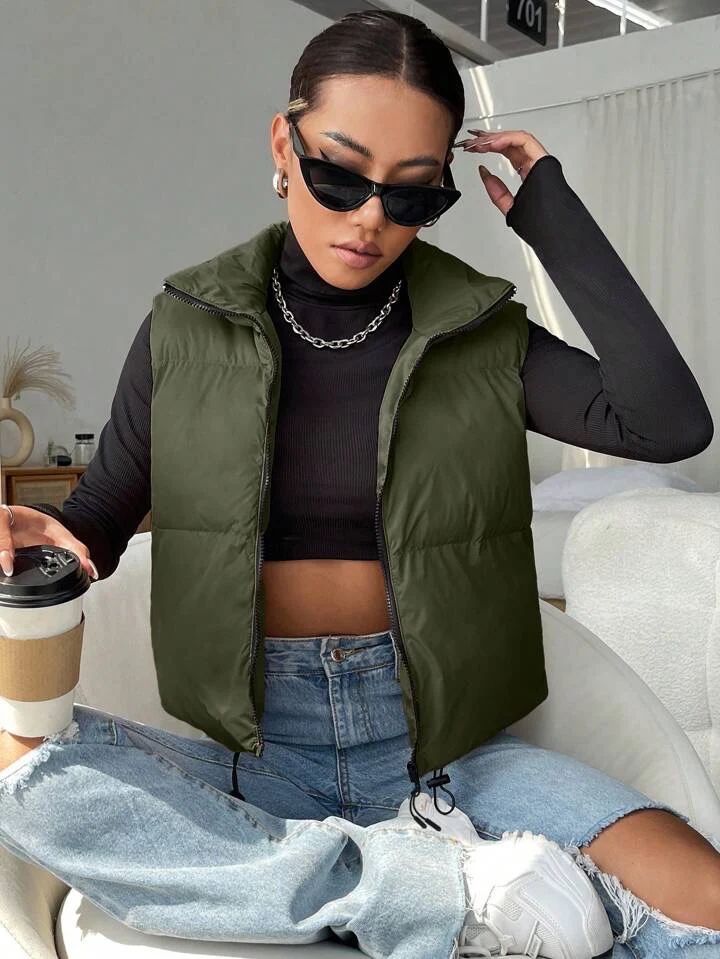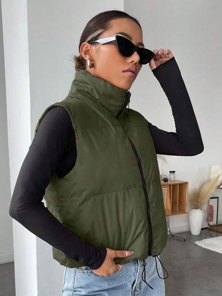 เสื้อกั๊กขนเป็ดแบบมีซิปรูดของผู้หญิงเสื้อโค้ทเสื้อขนเป็ดแบบพรีเมียมเสื้อแจ็คเก็ตแขนกุดสำหรับฤดูหนาว