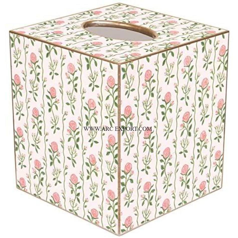 กล่องใส่กระดาษทิชชู่ไม้สีขาวและชมพูแบบทำมือกล่องใส่กระดาษทิชชู่ตกแต่งโต๊ะรูปทรงสี่เหลี่ยม