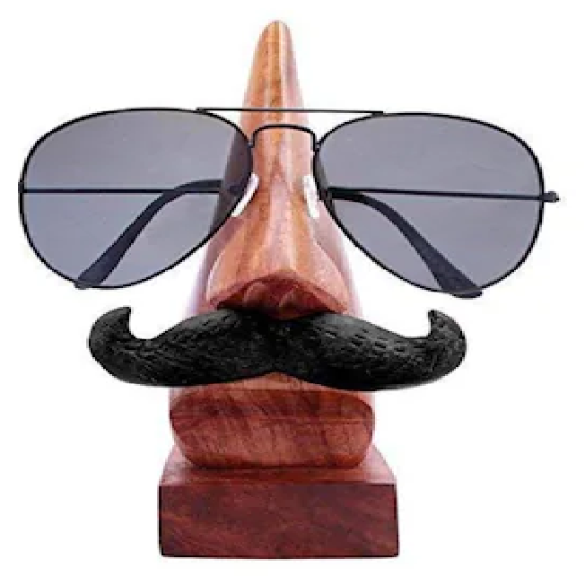 Trending Eco-Friendly Handmade Wooden Eye and Nose Glass Holder with Classic Mustache Style Specs Rack