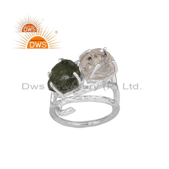พลอยเม็ดหยาบและพลอย Herkimer สีเงินสเตอร์ลิงแบบละเอียดได้รับการออกแบบโดยผู้ผลิตเครื่องประดับตามต้องการ