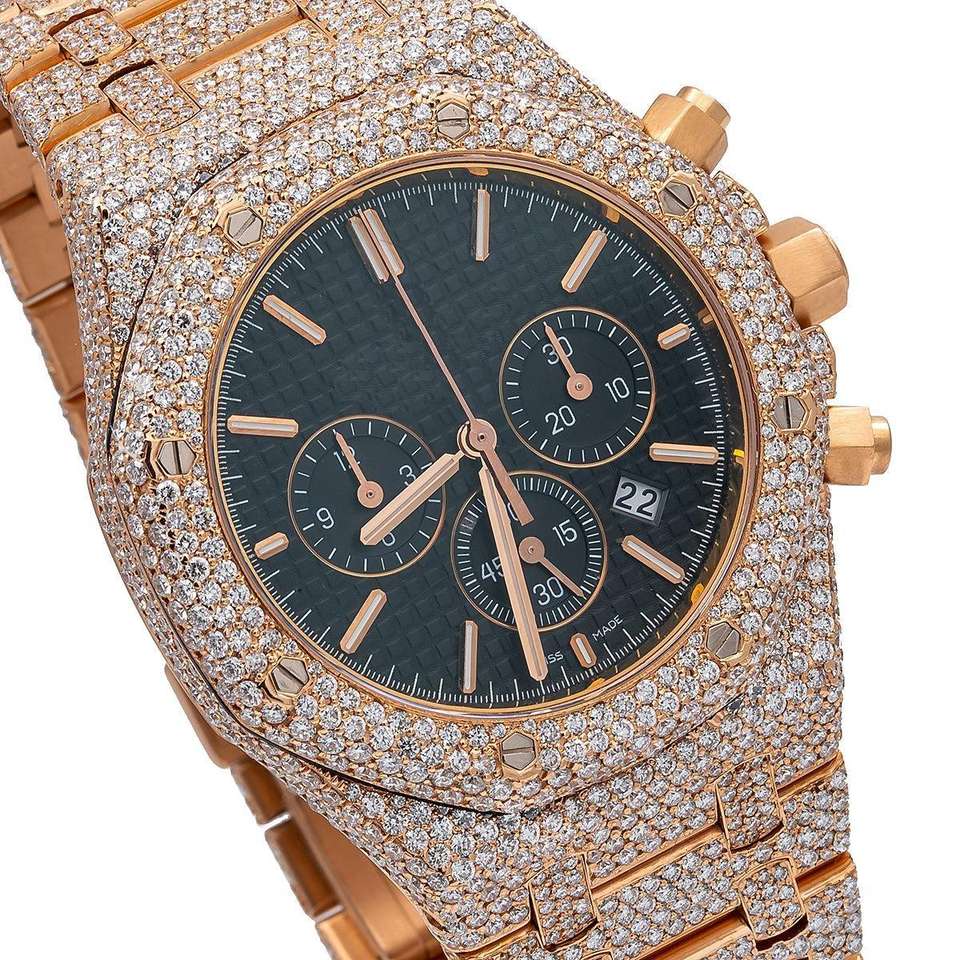 นาฬิกาหรูหราประดับเพชรเต็มหน้าปัด ดีไซน์ทันสมัย หน้าปัดกระจก คุณภาพสูง กลไกควอตซ์ ประดับโมอิสซาไนต์สีดำ สไตล์คลาสสิก โดดเด่นมีเสน่ห์