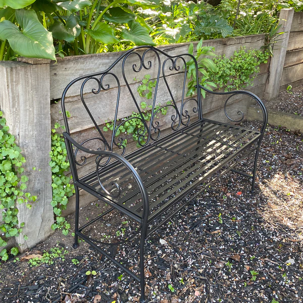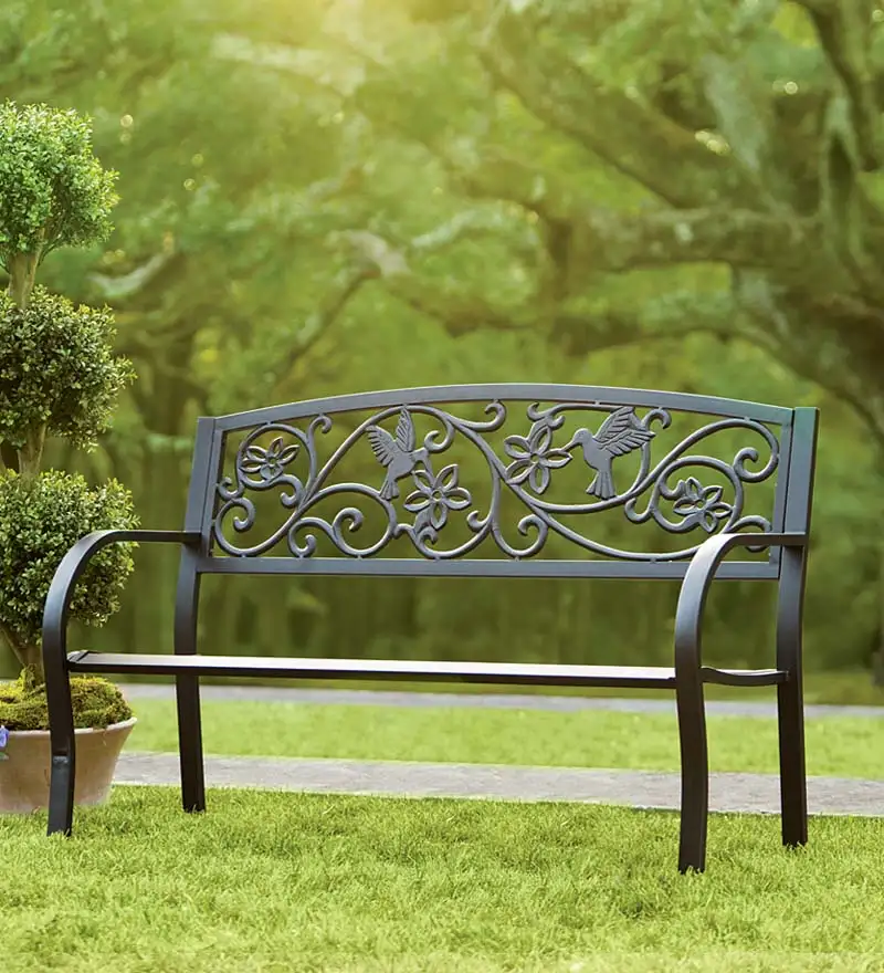 ม้านั่งโลหะในสวนกลางแจ้ง
