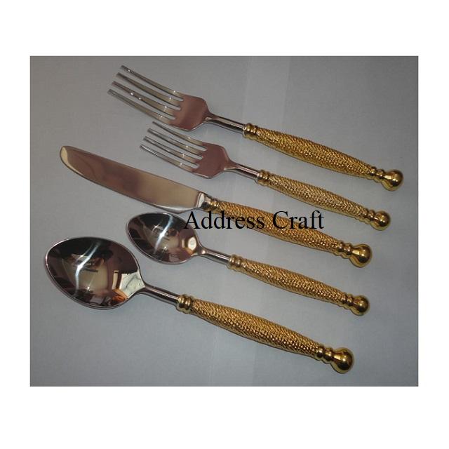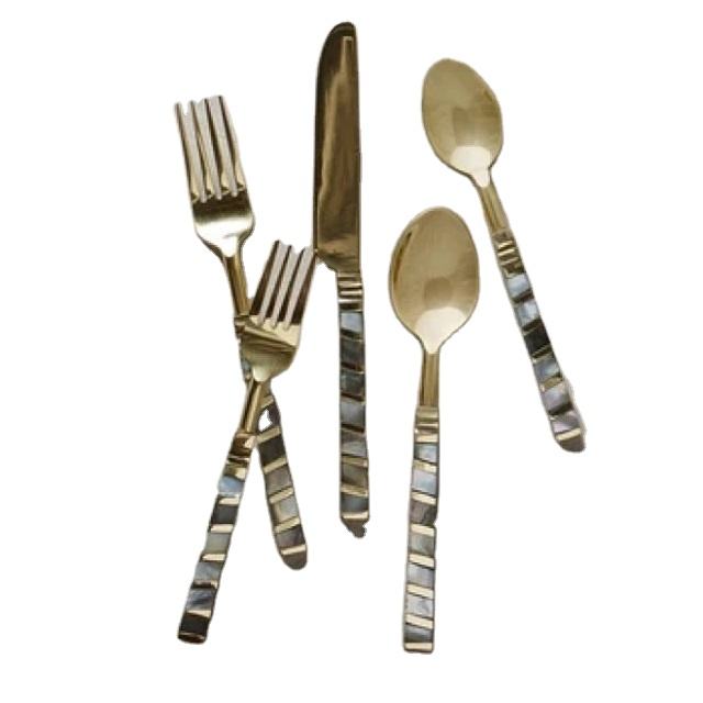 ชุดเครื่องใช้บนโต๊ะอาหารสีทองพร้อมที่จับมุกชุดรับประทานอาหารชุดรับประทานอาหาร5ชิ้นสีทองหรูหรา