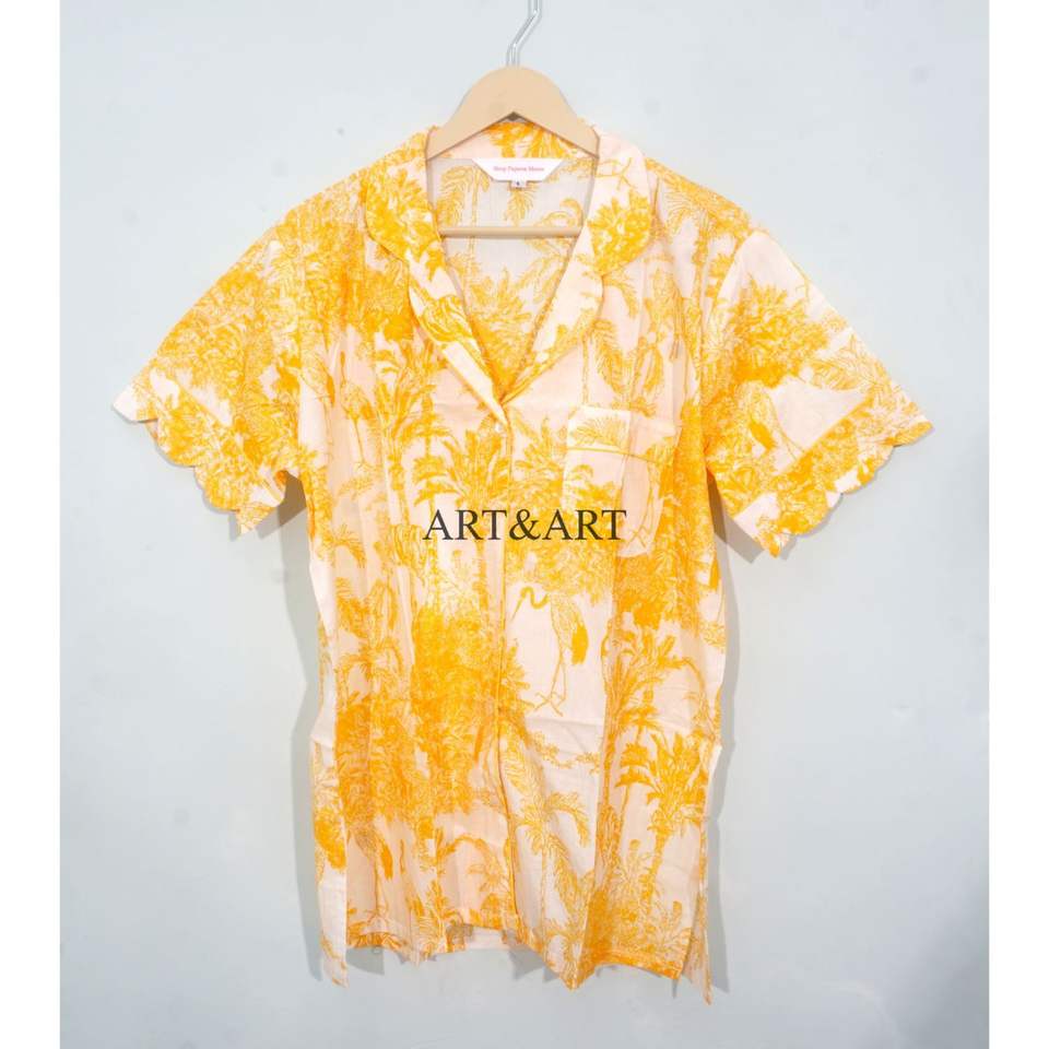ชุดนอนผ้าฝ้ายพิมพ์ลายบล็อกแฮนด์เมดสไตล์อินเดีย วินเทจสวยงาม ชุดนอนขาสั้นสำหรับฤดูใบไม้ร่วง ฤดูร้อน ฤดูใบไม้ผลิ กำลังเป็นที่นิยม