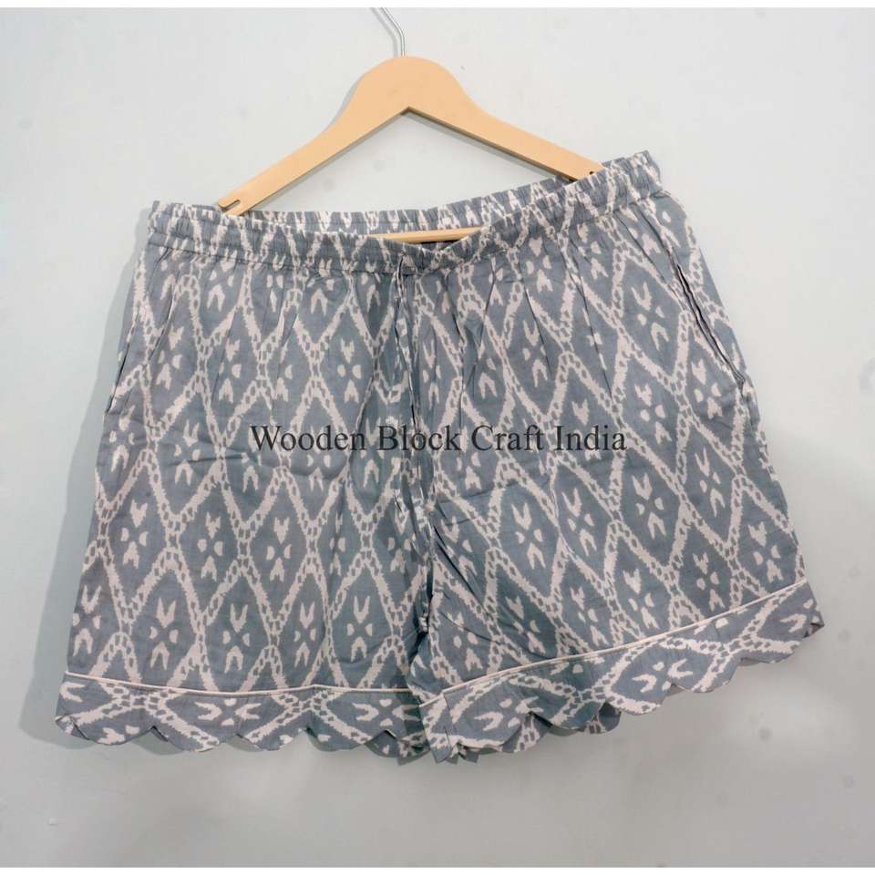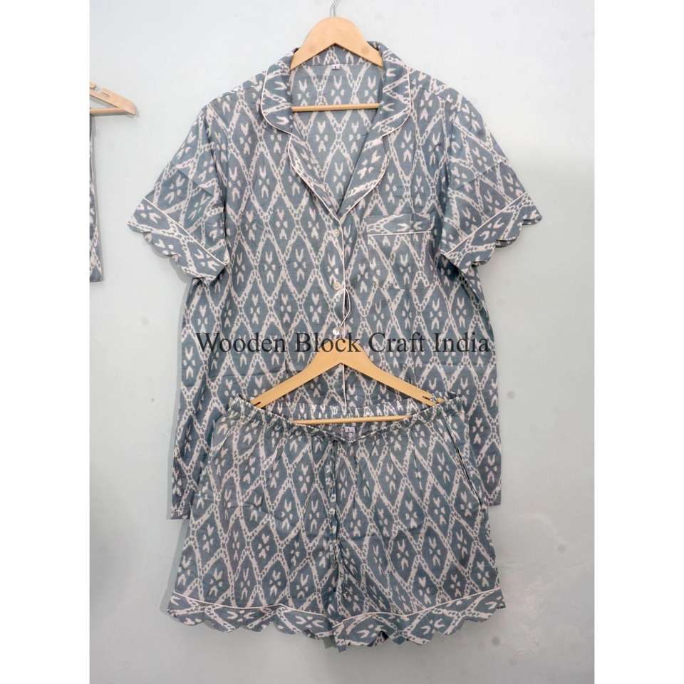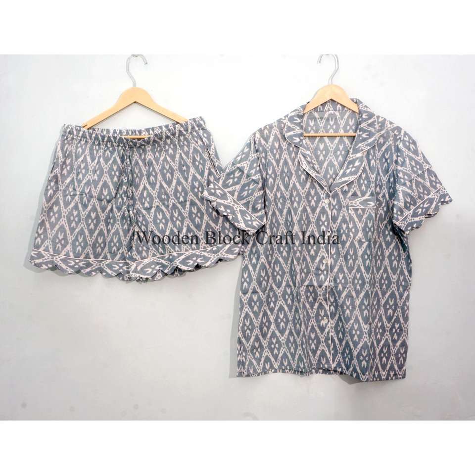 ชุดนอนผ้าฝ้ายพิมพ์ลายบล็อกแฮนด์เมดสไตล์อินเดีย วินเทจสวยงาม ชุดนอนขาสั้นสำหรับฤดูใบไม้ร่วง ฤดูร้อน ฤดูใบไม้ผลิ กำลังเป็นที่นิยม