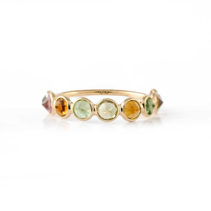 100% ยอดนิยมทำด้วยมือแหวนพลอยสีทอง14K แบบครึ่งทัวร์มาลีนหลากสีคุณภาพเยี่ยม