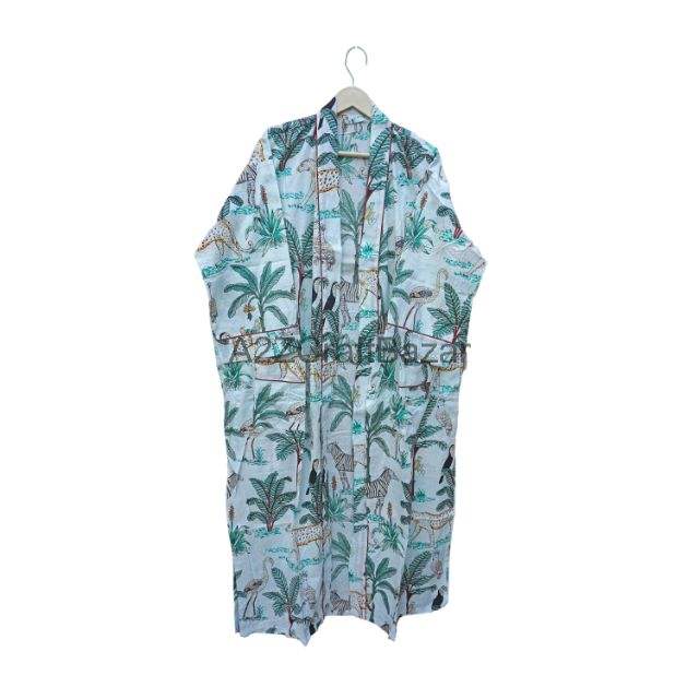 ชุดกิโมโนลายดอกไม้สำหรับผู้หญิงชุดกลางคืนทำจากผ้าฝ้ายน้ำหนักเบาระบายอากาศได้ดีให้ความรู้สึกนุ่มมากในฤดูใบไม้ร่วง