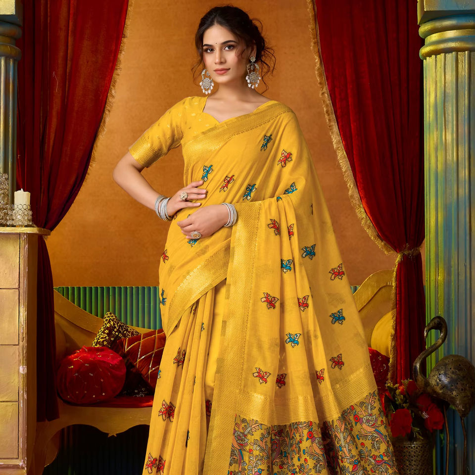 ผ้าส่าหรีผ้าไหมหนาพร้อมด้ายปักเลื่อมและไข่มุกมาพร้อมกับเสื้อทำงานและเสื้อเบลาส์ดีไซน์เนอร์แบบเต็มตัว