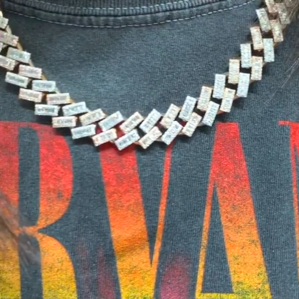 ห่วงโซ่เพชรโมอิสขนาด18มม. สายโซ่แบบคิวบา925โซ่เพชรโรสโกลด์ออกแบบได้ตามต้องการ
