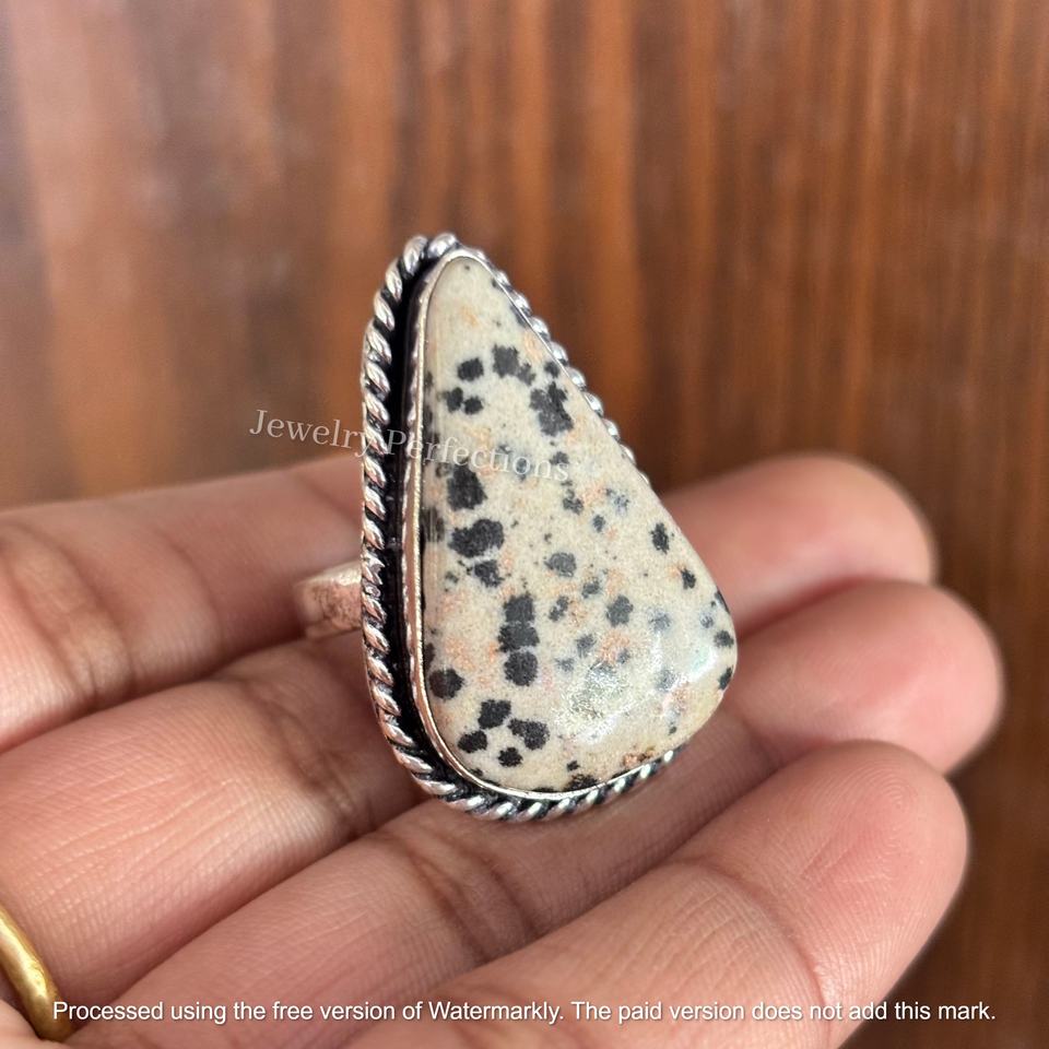 925 Sterling Silver Dalmatian jasper Ring